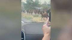 Captured in a video by a motorist, the herd was seen fleeing as smoke engulfed the area.